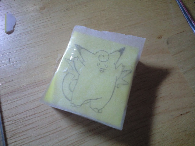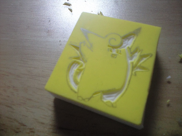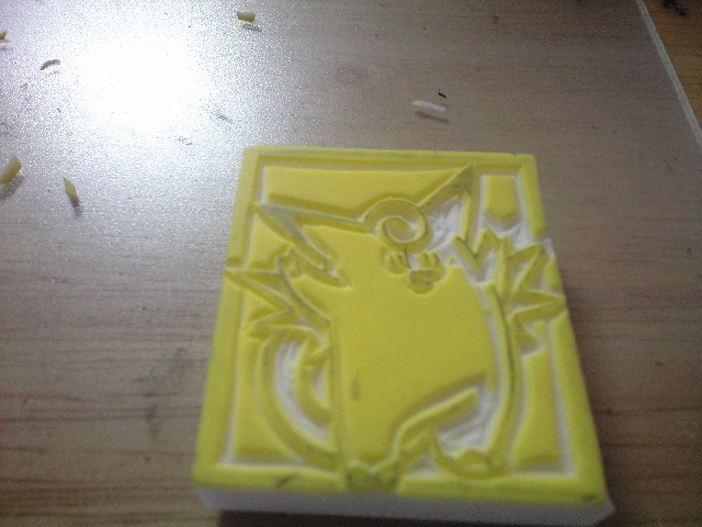 あらかじめ切り出した消しゴムに貼り付け、上からゴリゴリやります。