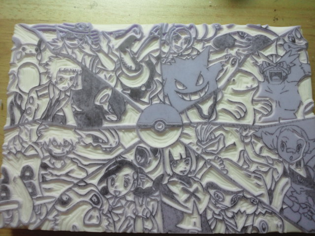 ようやく彫り終わりました。あとはインクをのせて押すだけです