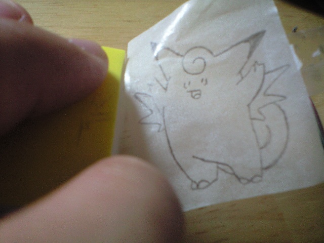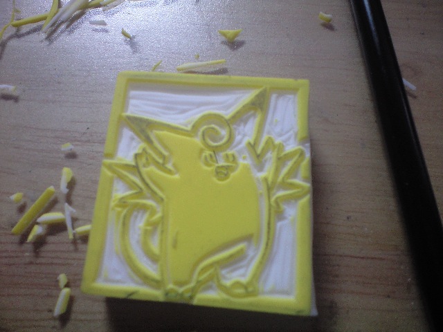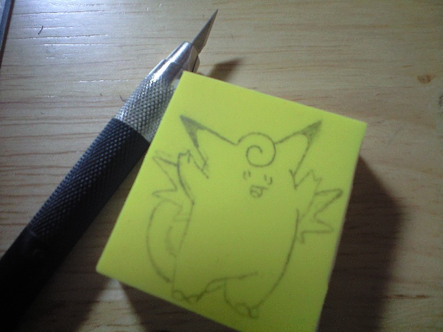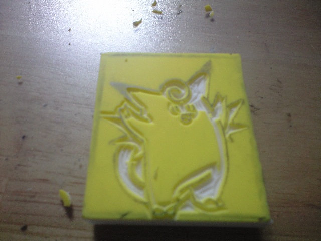 あらかじめ切り出した消しゴムに貼り付け、上からゴリゴリやります。