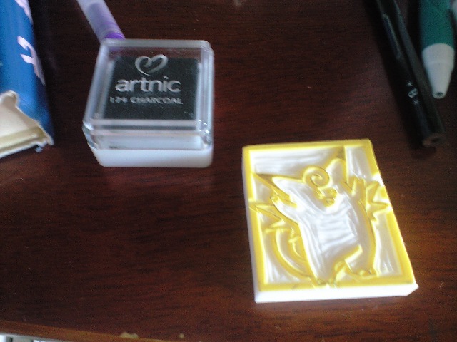 スタンプ台に押し付けるとインクが大量に付くので軽く叩く感じでつけるといいです。