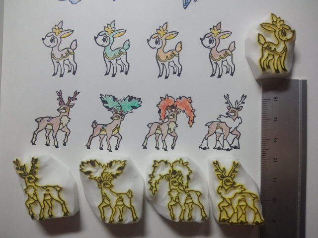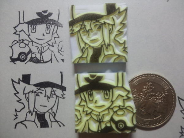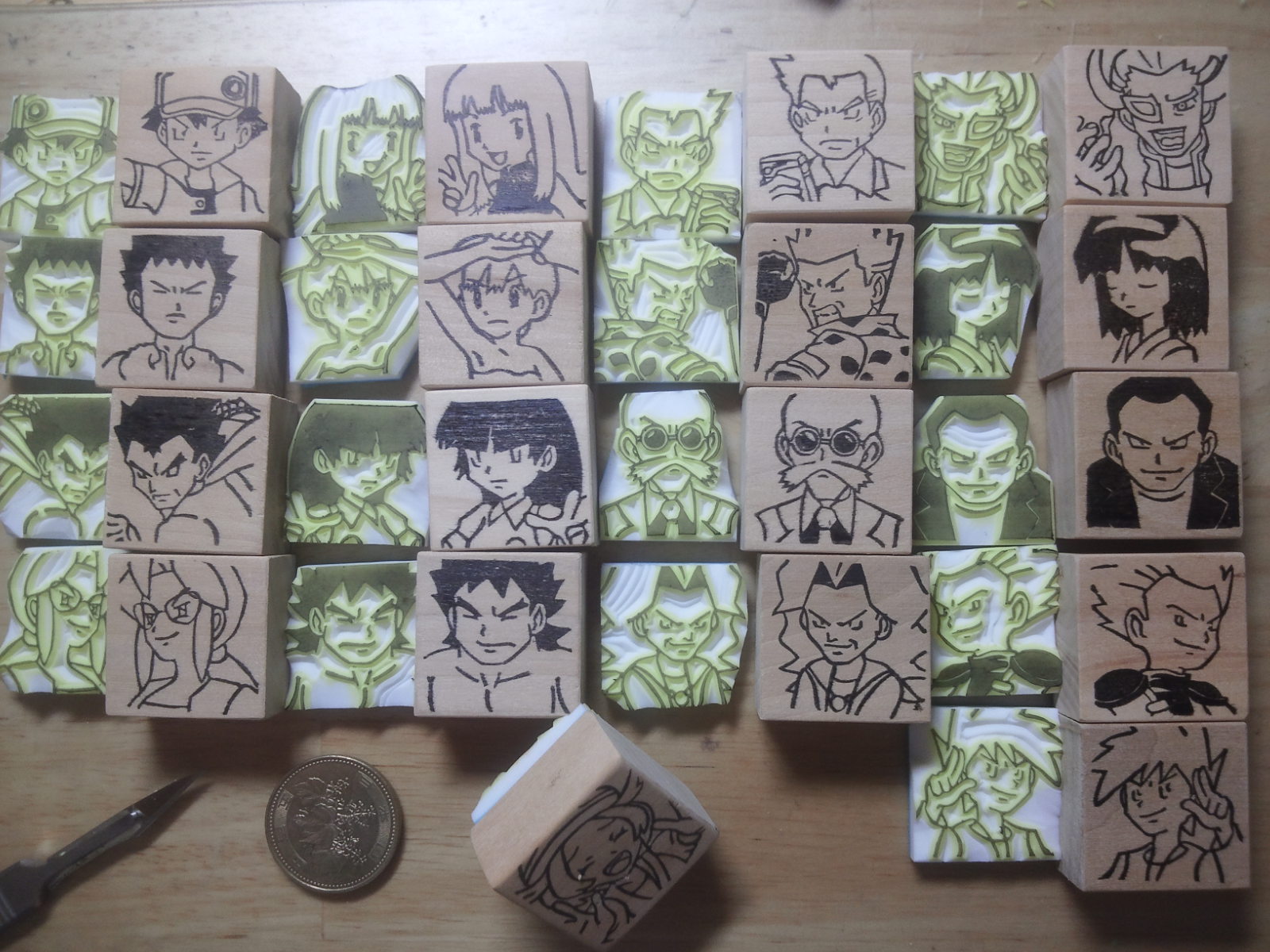 原点回帰で赤緑主人公とオーキドはかせ、ライバルとジムリーダー、してんのうを彫ってみました。