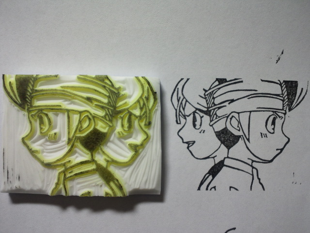 イナズマイレブなんとかの主人公を初めて彫ったよ。